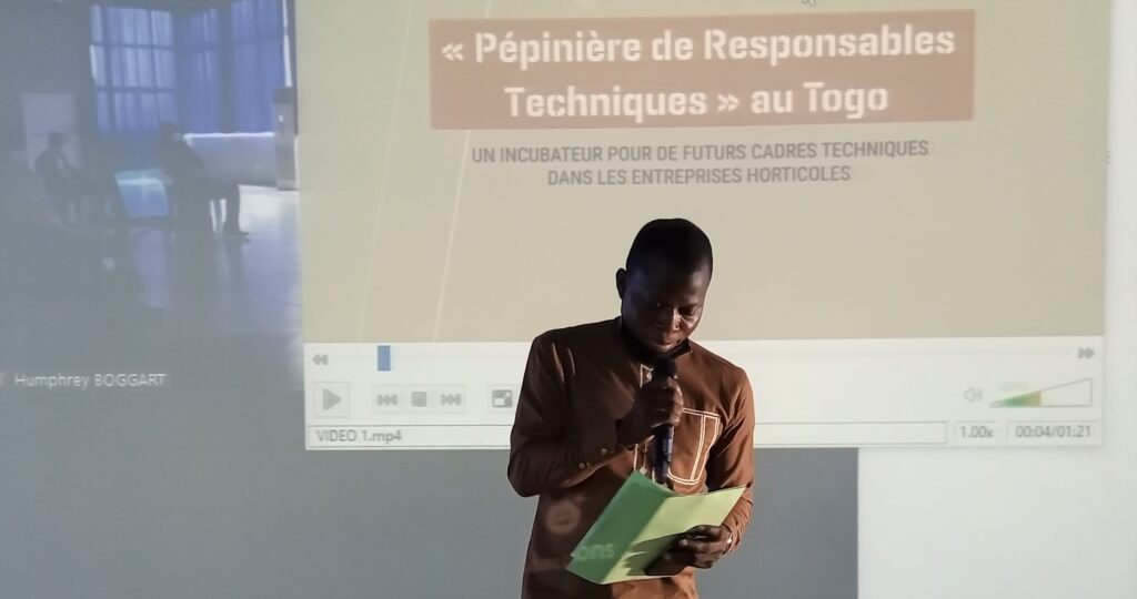 Le 10 juin dernier, s’est déroulé l’évènement de clôture du projet « pépinière de responsables techniques » mis en œuvre au Togo de juin 2020 à février 2021. Le projet a été mis en œuvre par le COLEACP en collaboration avec des entreprises togolaises dans le cadre du Projet STDF Togo. La DUE, la GIZ, la Direction de Protection des Végétaux et l’APROTELF sont les autres partenaires qui étaient associés pour l’occasion. Après les discours officiels et les témoignages des différentes parties prenantes dont les experts formateurs, les 22 jeunes participants au projet ont tous reçu leur certificat sous le regard attentif et bienveillant des membres de l’équipe du COLEACP présents à distance via zoom.